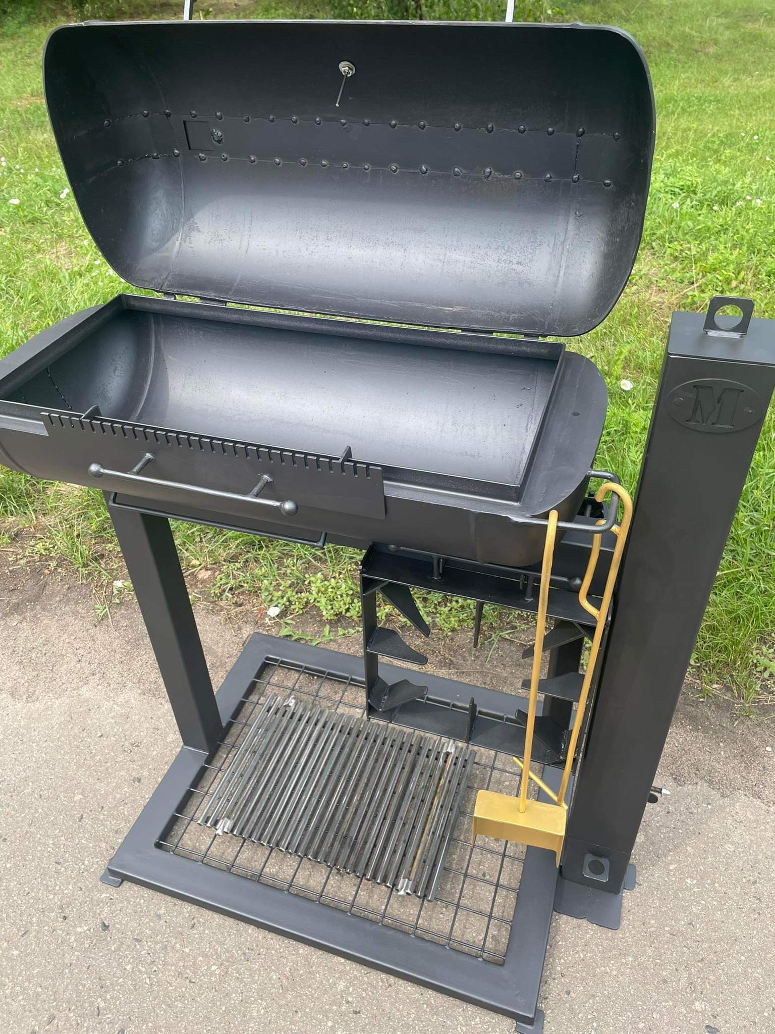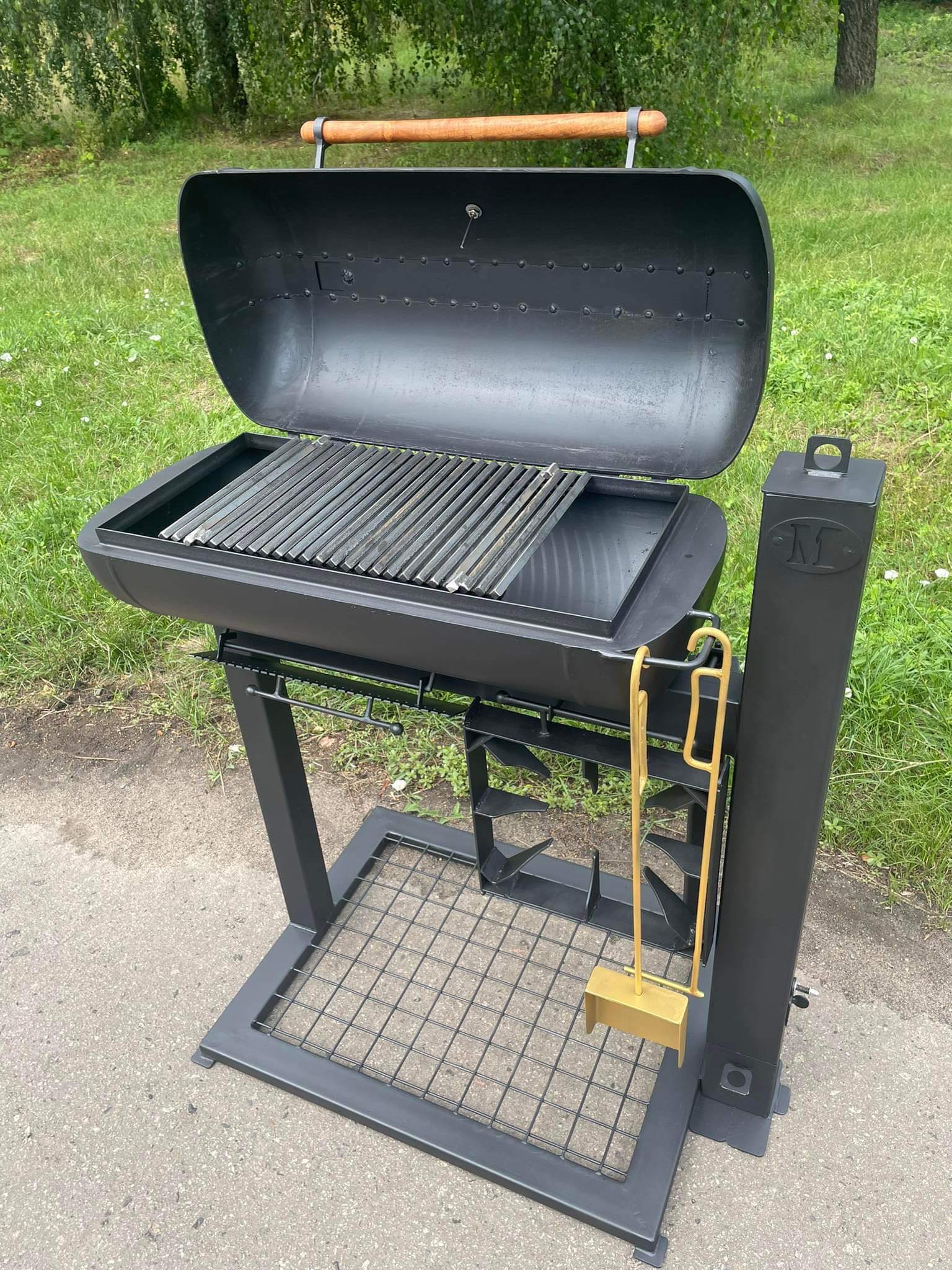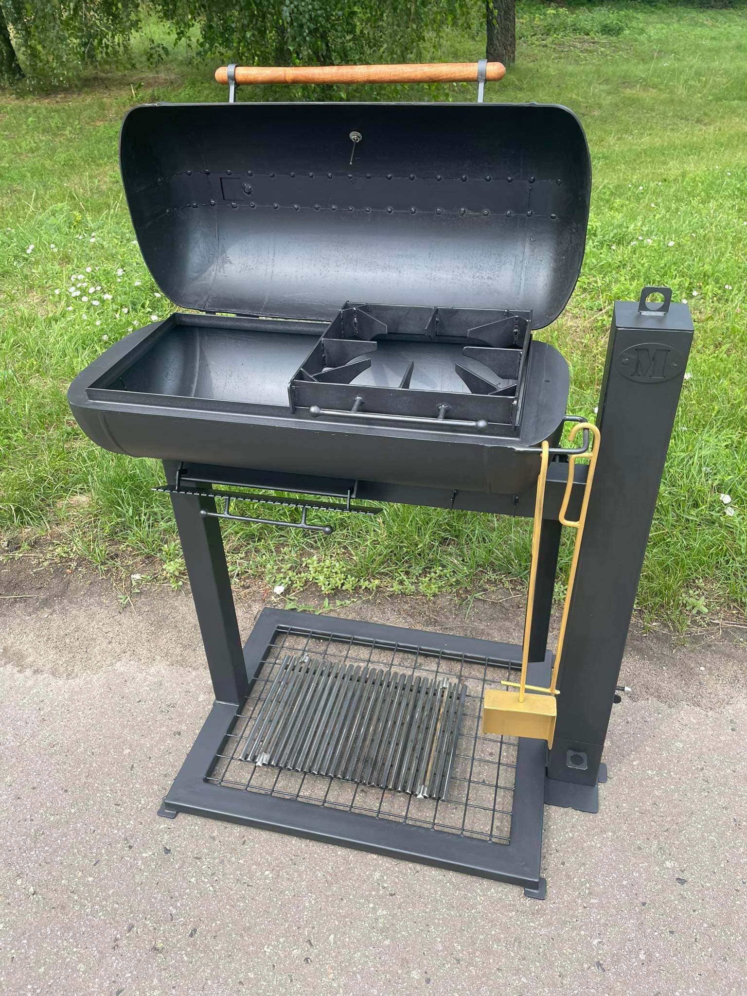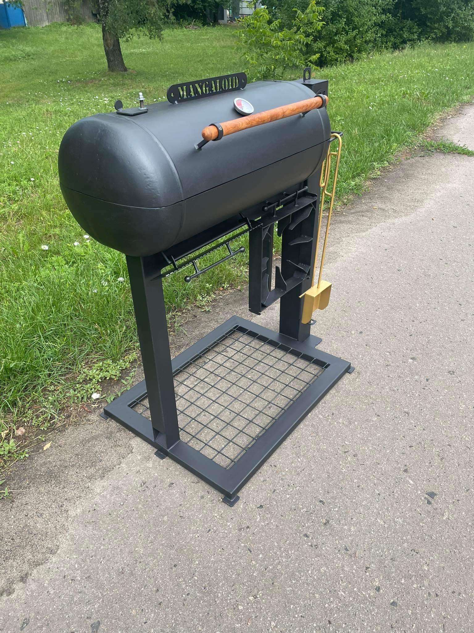 «МАНГАЛ-КОПТИЛЬНЯ» ВИГОТОВЛЕНИЙ ІЗ СТАЛІ 3 ММ. МАЄ ЦИЛІНДРИЧНУ ФОРМУ, КРИШКА ОБЛАДНАНА ДАТЧИКОМ ТЕМПЕРАТУРИ ДЛЯ ПРИГОТУВАННЯ БАРБЕКЮ . Є ПОТАЄМНА ЗРУЧНА СИСТЕМА ДЛЯ ПІДДУВУ ВУГІЛЛЯ ТА ЗБОРУ ПОПЕЛУ.ПРАВОРУЧ Є ВІДСІК ЯКИЙ ЯВЛЯЄ СОБОЮ ДИМОГЕНЕРАТОР( З ДВОМА КОНТЕЙНЕРАМИ ДЛЯ ЩЕПИ) КОНСТРУКЦІЯ ДУЖЕ НАДІЙНА ТА СТІЙКА, МАЄ ДОДАТКОВІ ПОЛИЧКИ, ДЕРЕВ’ЯНУ РУЧКУ КРИШКИ. ПРОСЛУЖАТЬ ДЕСЯТИЛІТТЯ БЕЗ ВТРАТИ ФІЗИЧНИХ ВЛАСТИВОСТЕЙ. ВИРІБ ДОВГО УТРИМУЄ ВИСОКУ ТЕМПЕРАТУРУ ВУГІЛЛЯ, НЕ ДЕФОРМУЮЧИСЬ ВІД ЖАРУ ТА УМОВ ЕКСПЛУАТАЦІЇ.
