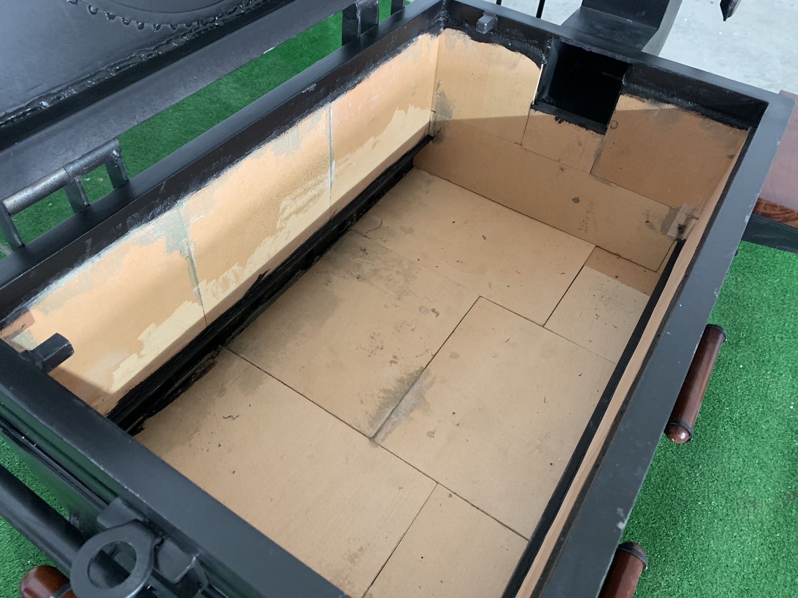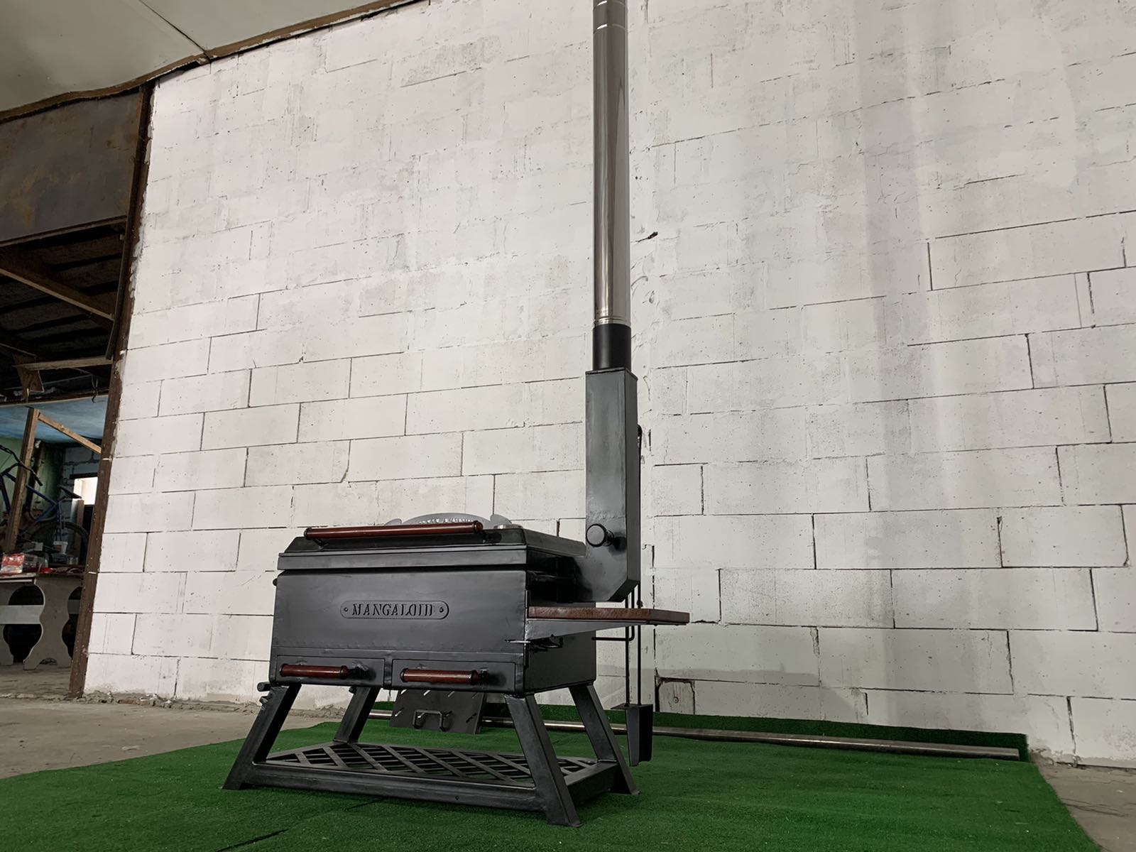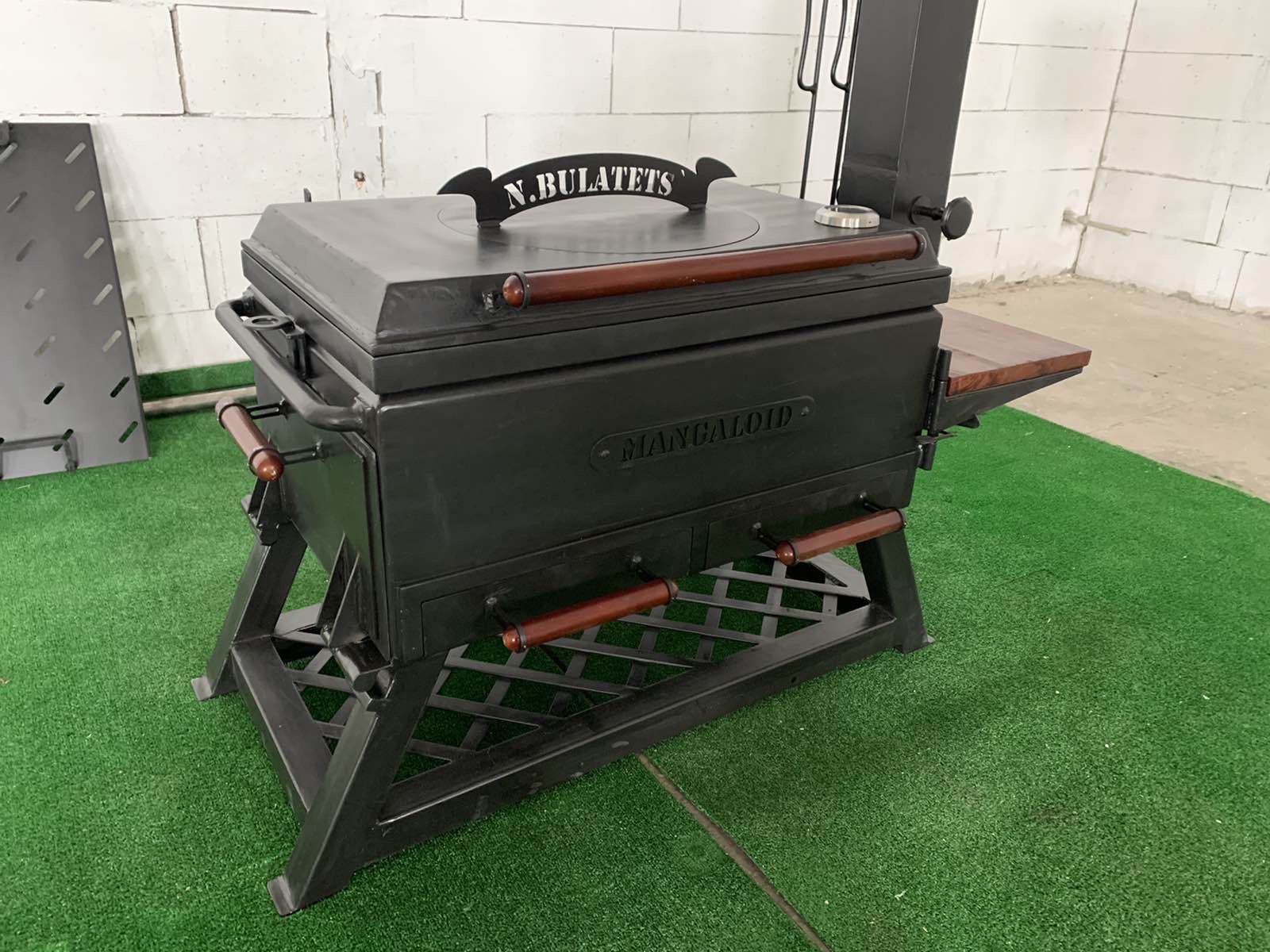 Піч достатньо велика для завантаження дров або вугілля для тривалого приготування їжі. Враховуючи наявність верхньої кришки, вона ж плита для смаження , можна використовувати піч в якості мангалу ; для цього в комплекті є додатковий лист-дно для зменшення глибини печі. Для роботи із піччю для приготування у казані, передбачено бокові дверцята для додавання дров чи вугілля.Піч вироблено із листового металу товщиною 3 мм, обладнана датчиком температури, має дерев’яні ручки для безпечного відкривання кришки, дверцят та засувів, а також дерев’яний відкидний столик. Труба для відводу диму знімна вироблена із нержавіючої сталі. Також додаються аксесуари- решітка-барбекю, кочерга 2 шт, совок для збирання вугілля, гребінка для фіксування шампурів. Є можливість додатково обладнати піч шамотним камінням для більшої акумуляції тепла.