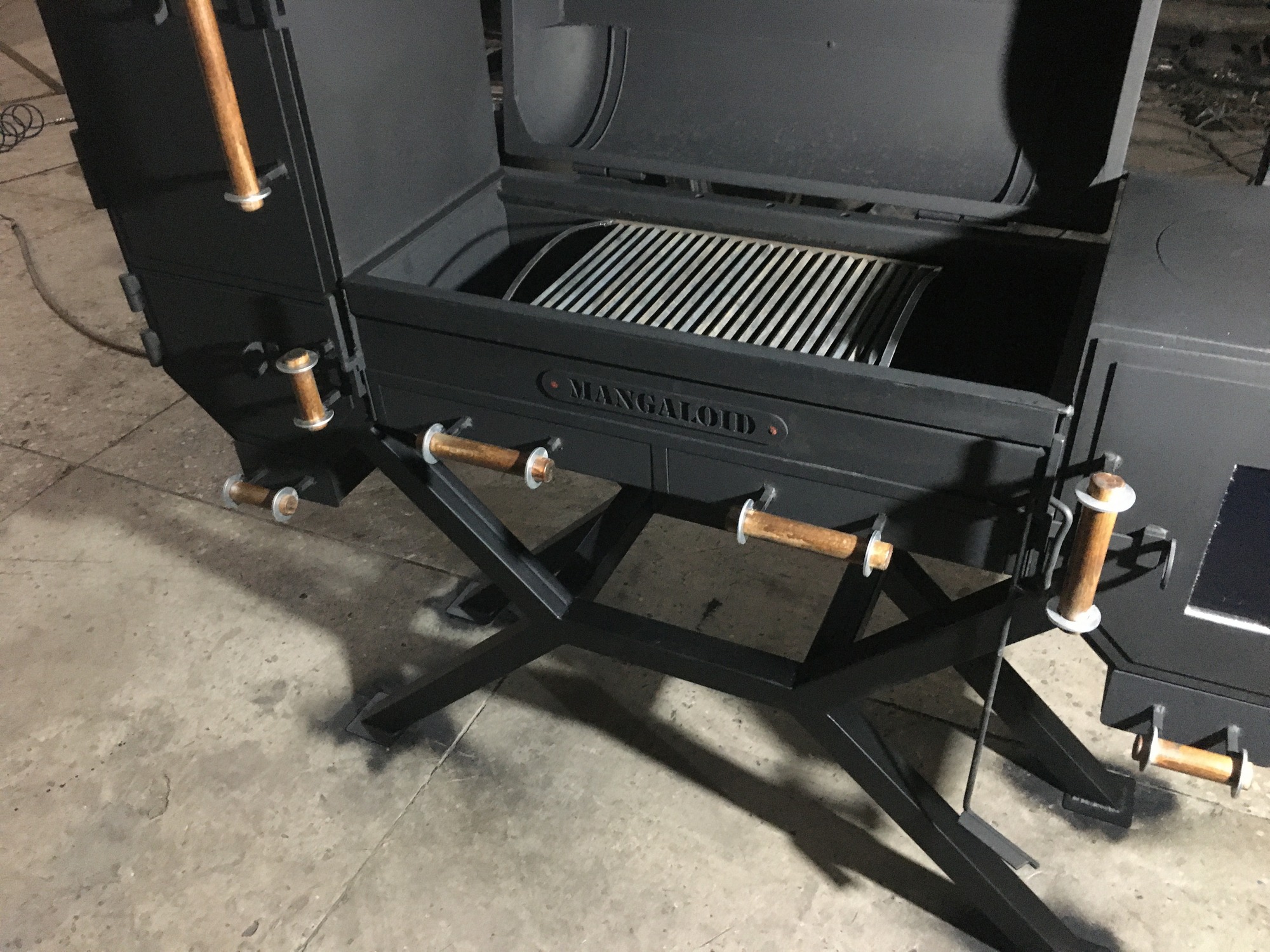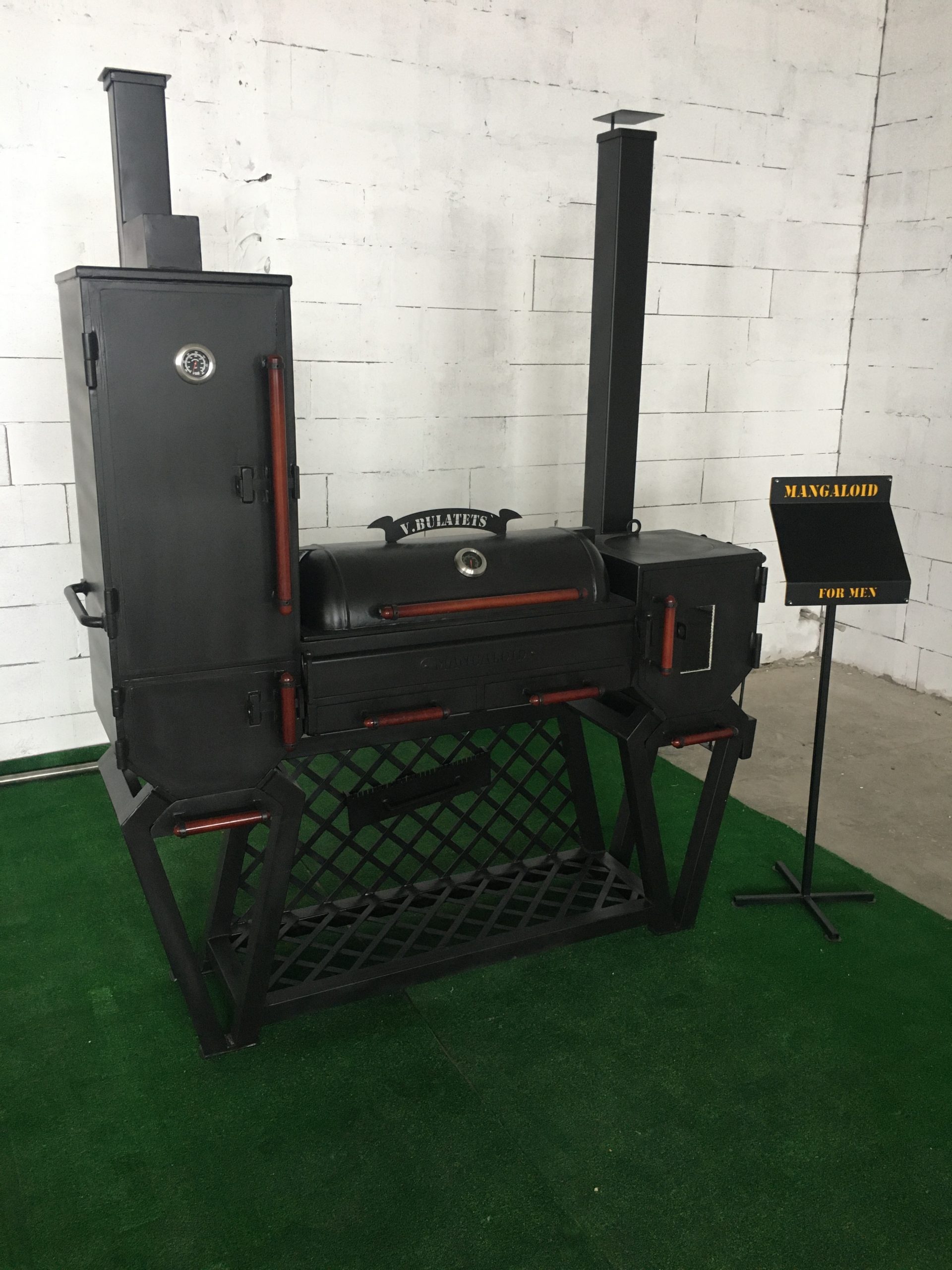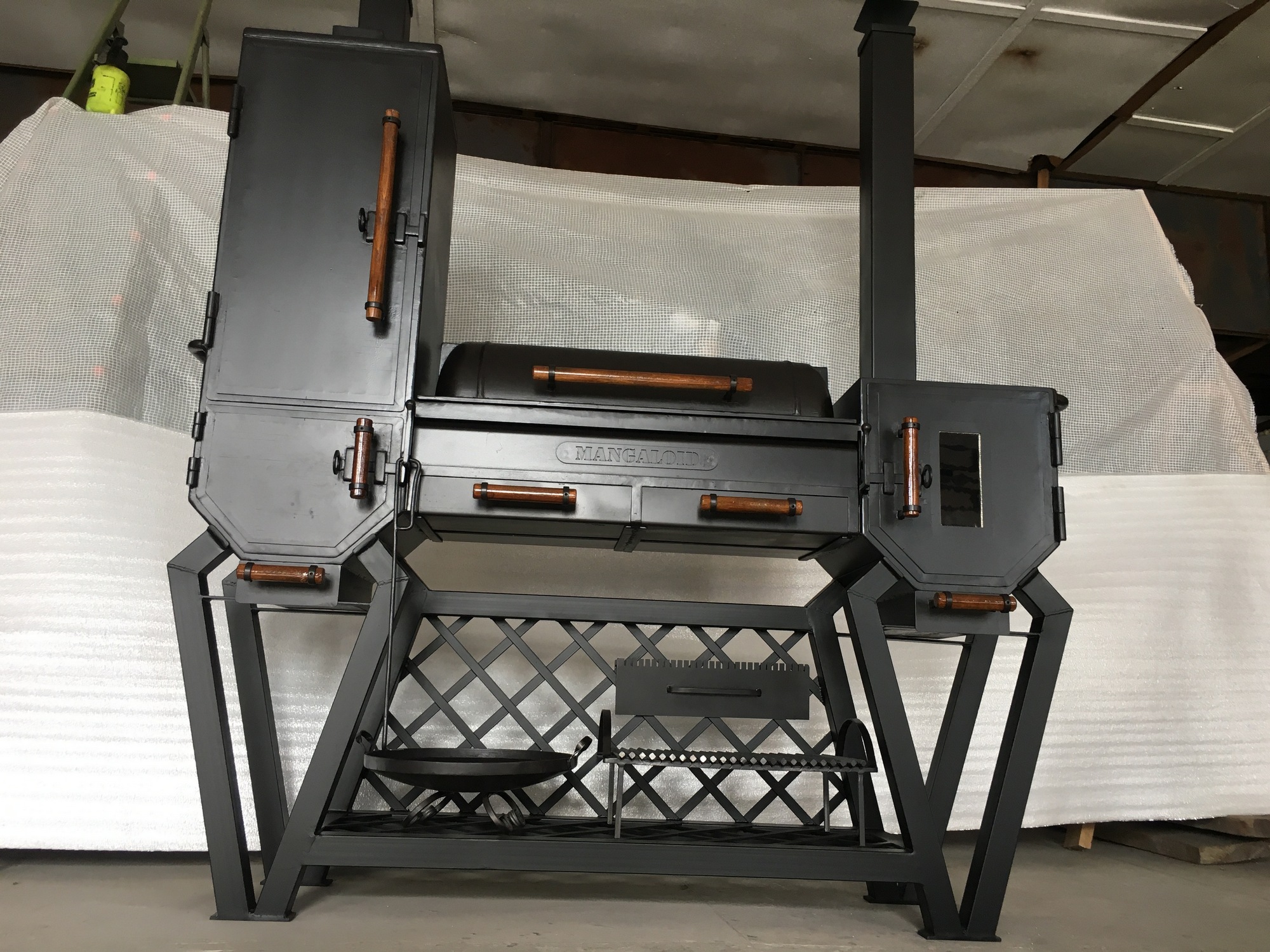 Комплекс має піч для приготування перших страв або смаження на пательні, коптильну шафу, та сам мангал із кришкою для приготування барбекю. Комплекс являє собою прилад для одночасного приготування декількох страв. За рахунок неповторної запатентованої конструкції, копчення у коптильній шафі може бути як гарячим так і холодним. Для зручного транспортування станина зроблена окремо. Комплекс вироблений із листового металу товщиною 3 мм, обладнаний датчиками температури ( на коптильній шафі та на мангалі) , має дерев’яні ручки для безпечного відкривання кришки, дверцят та засувів. Труба для відводу диму обладнана механізмом, який змінює положення кришки (закрити / відкрити). Також додаються аксесуари- решітка-барбекю, кочерга 2 шт, совок для збирання вугілля, гребінка для фіксування шампурів.