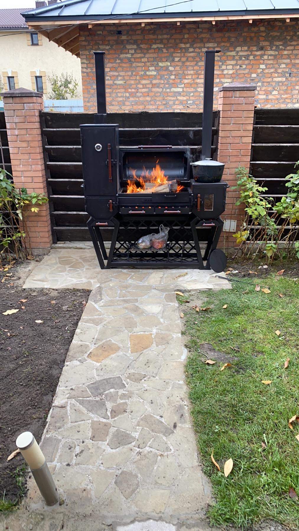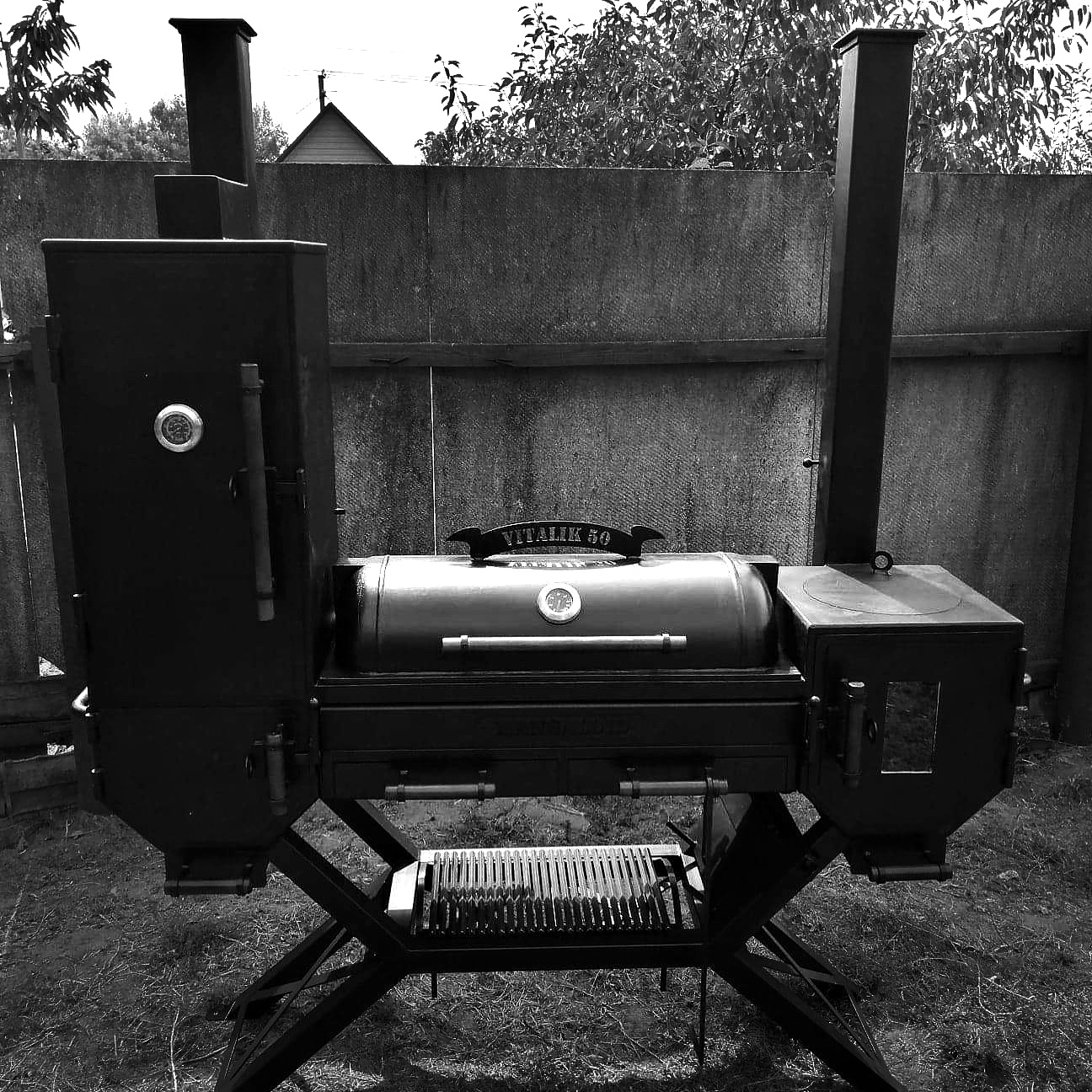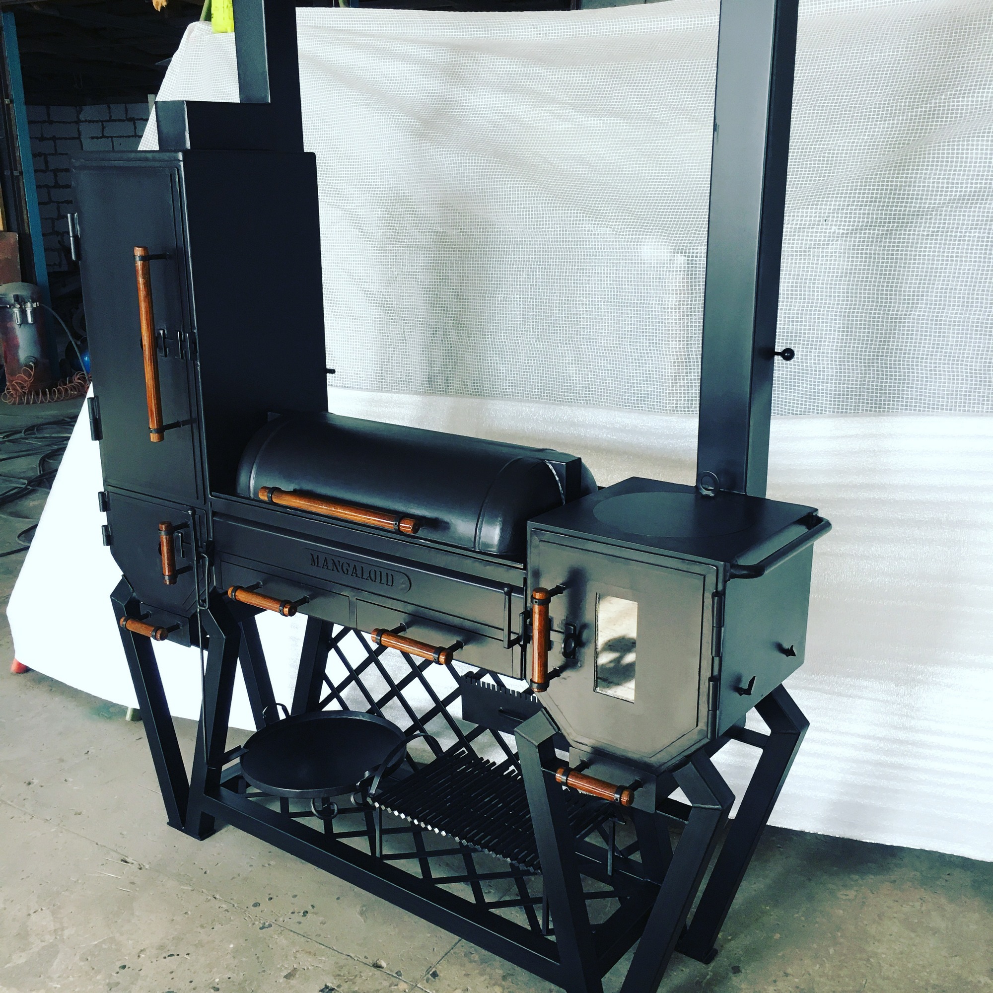 Комплекс має піч для приготування перших страв або смаження на пательні, коптильну шафу, та сам мангал із кришкою для приготування барбекю. Комплекс являє собою прилад для одночасного приготування декількох страв. За рахунок неповторної запатентованої конструкції, копчення у коптильній шафі може бути як гарячим так і холодним. Для зручного транспортування станина зроблена окремо. Комплекс вироблений із листового металу товщиною 3 мм, обладнаний датчиками температури ( на коптильній шафі та на мангалі) , має дерев’яні ручки для безпечного відкривання кришки, дверцят та засувів. Труба для відводу диму обладнана механізмом, який змінює положення кришки (закрити / відкрити). Також додаються аксесуари- решітка-барбекю, кочерга 2 шт, совок для збирання вугілля, гребінка для фіксування шампурів.